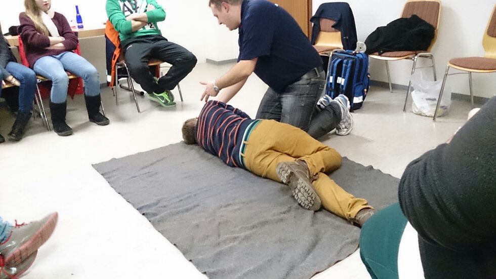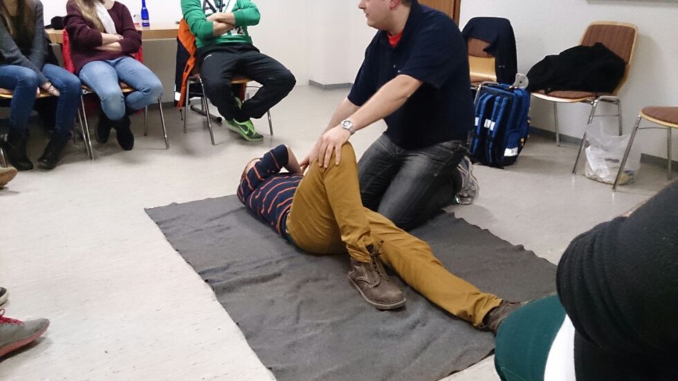 Nachdem Carsten uns die grundlegenden Dinge der Erste Hilfe erklärt hatte, spielten wir einen Notfall durch: