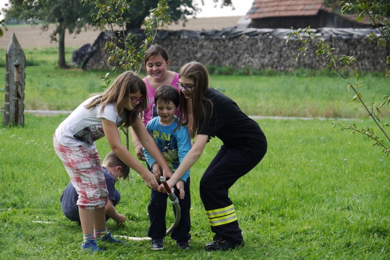 Nach Besuchen beim Förderverein, Gesangverein, Sportverein und Naturschutz, lud zum Abschluss der Ferienwoche die Freiwillige Feuerwehr zu Ferienspielen am Gerätehaus ein.